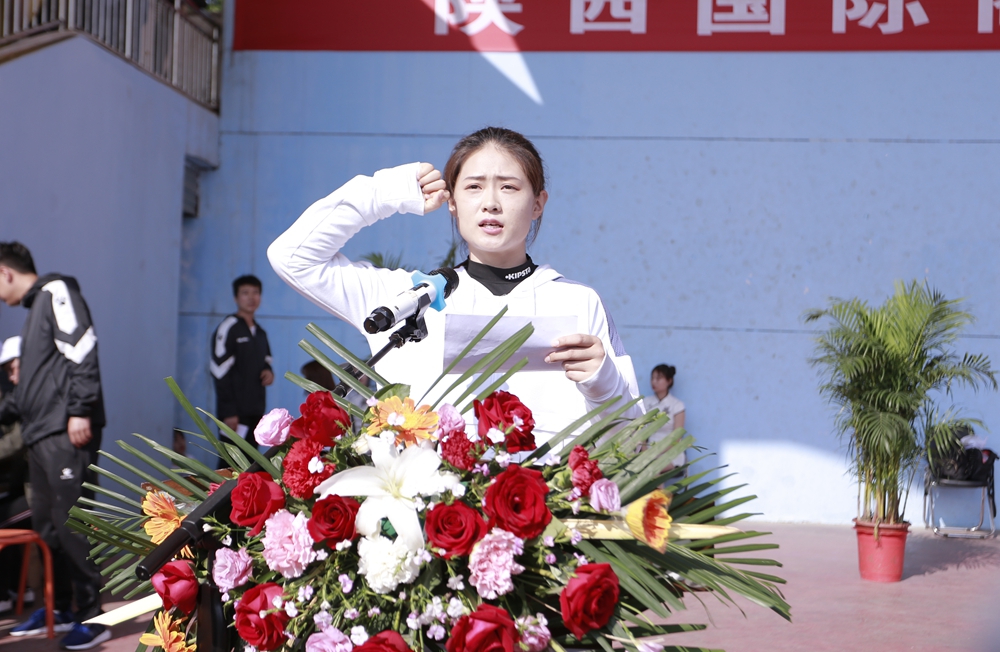 运动员代表王轶譞、裁判员代表李伟强依次上台宣誓,表示将严格遵守运动会要求和规则,完成执裁和比赛。
