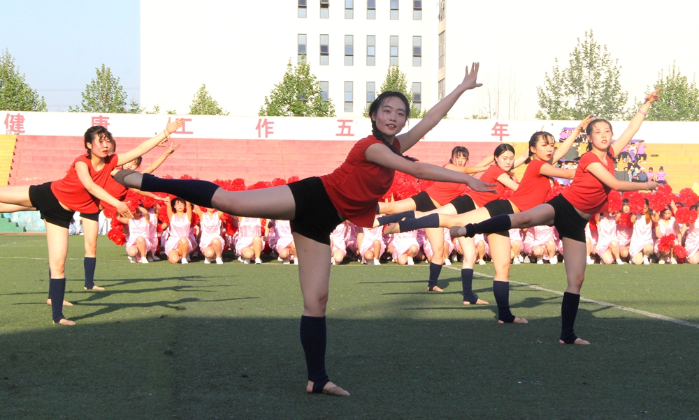 随后,团体操《追梦商院》表演开始。炫彩青春的花球舞表演,活泼的舞步展示着青春的风影。铿锵有力的武术表演,尽情展示着中华武术之魂。柔美轻韵的团体瑜伽,传递着舒适宁静的韵律。气宇轩昂的腰鼓,展示了中华民族刚健勇武的精神传承。