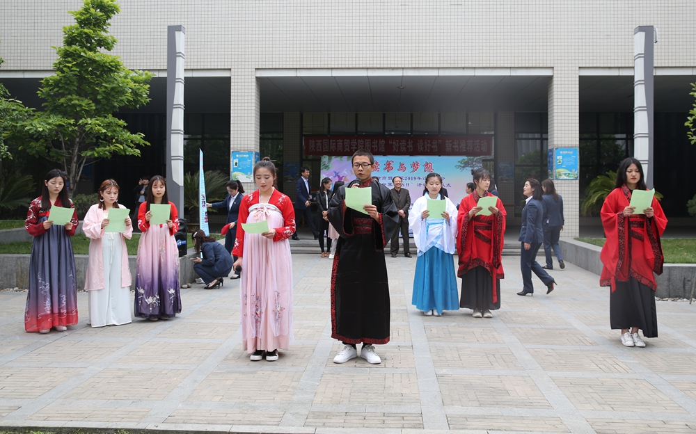活动伊始,在快闪音乐节奏的带动下,来自国际经济学院的50多名富有朝气的大学生演绎了‘快闪客’和小合唱《我和我的祖国》为本届读书大会拉开帷幕。她们用动感的舞姿和美妙的歌声吸引了课间的学生纷纷驻足观看。用自己的实际行动向新中国成立70周年献礼,也展现出了新时代大学生的良好精神风貌和爱国热情。