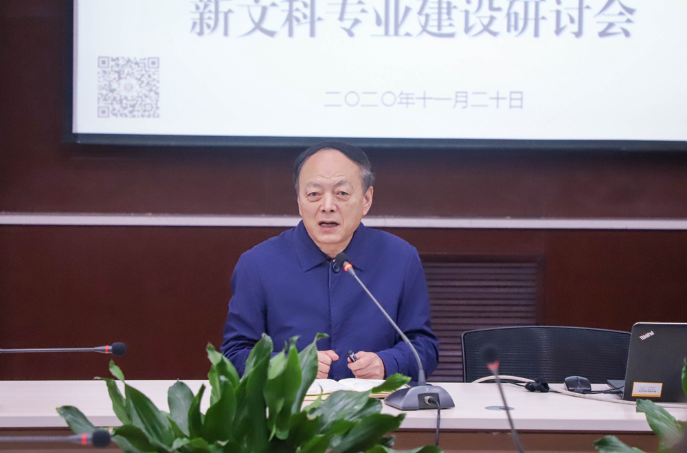校长黄新民在会议中首先介绍了教育部高等教育司指导、教育部新文科建设工作组主办的新文科建设工作会议情况。他表示要做好新文科建设就要明确内涵,找准特征,明确任务,他指出新文科建设要坚持教育创新发展、优化专业布局、强化价值引领;其关键要在课程建设上落细落实,在人才培养模式、教育教学形态上深刻变革;其本质是要培养学生的自主学习能力、合作学习能力、探究学习能力、终身学习能力。他要求,学校各项教学工作要融入新文科建设理念、思想和方法,坚持立德树人,推动我校人才培养改革,提升人才培养质量。