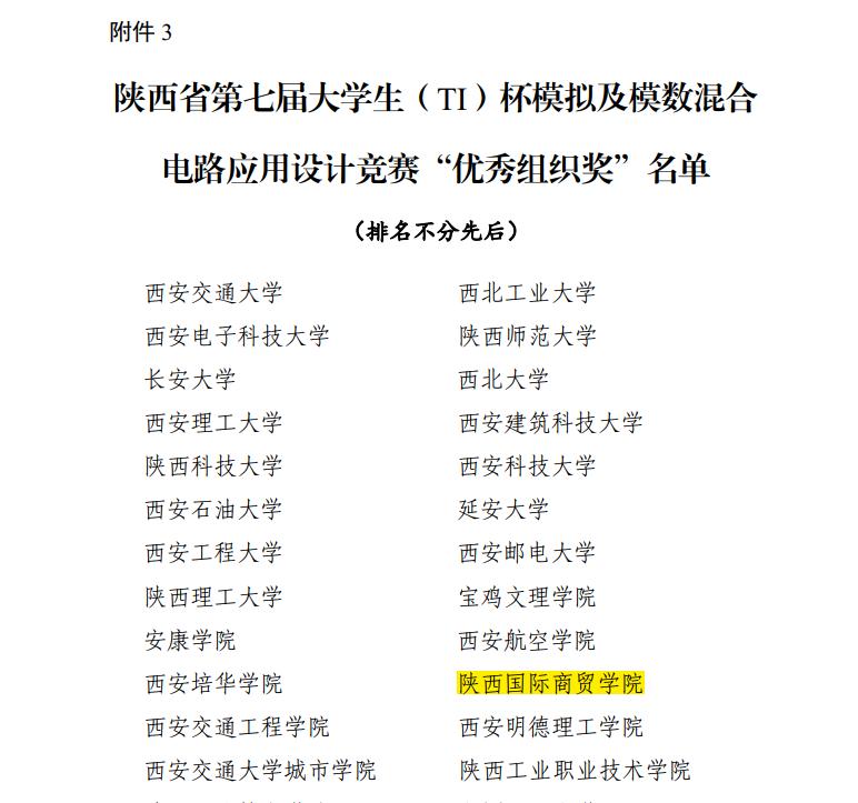 本网讯 近日,陕西省第七届大学生模拟及模数混合电路应用设计竞赛举行,信息工程学院学子在此项竞赛中斩获5个奖项,同时我校被授予优秀组织单位奖,信息工程学院王丽君老师获得优秀组织个人。
