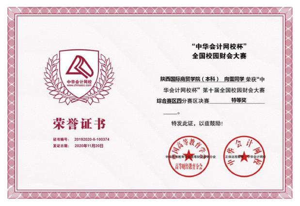 ——获第十届全国校园财会大赛陕西总决赛特等奖
