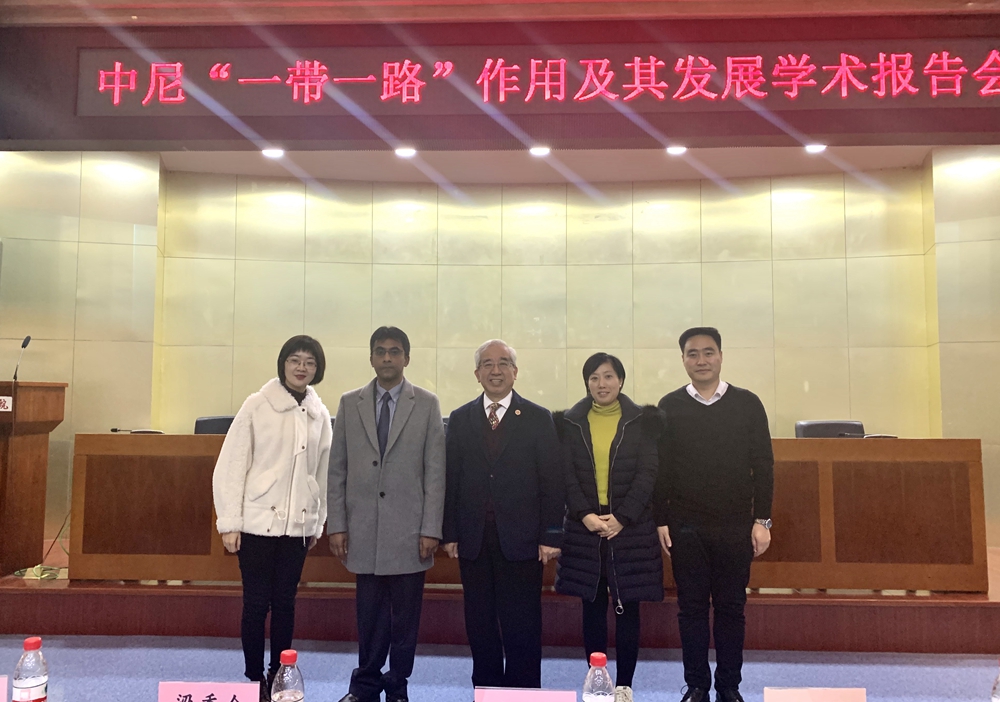 本网讯 12月3日下午,我校在学术报告厅举办中尼“一带一路”作用及其发展学术交流讲座。邀请西安医学院尼泊尔籍教授Rajiv Kumar Jha(拉吉姆)主讲,副校长梁季仓、商学院执行院长徐向宇、英国正版365官方网站党总支副书记王娜、时装艺术学院党总支副书记祝晓剑、学生职业发展与企业合作中心主任王文博、各二级学院无课教师、国际教育学院全体师生参加了本次讲座。