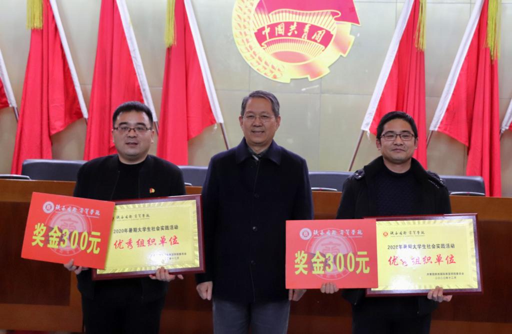 随后,与会领导为2020年暑期大学生社会实践活动获奖集体和个人进行了颁奖。社会实践优秀指导教师代表国际教育学院边国慧老师和暑期社会实践优秀个人代表医药学院豆帅同学分别作了交流发言,均表示在此次暑期社会实践活动中收获很大,不仅丰富了知识结构,增长了长干,也提升了同学们的社会责任感。