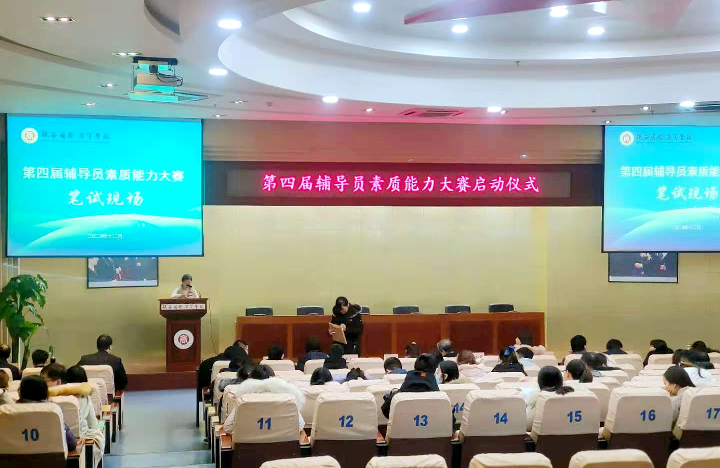 启动仪式后,我校第四届辅导员素质能力大赛笔试环节在学术报告厅二楼举行。