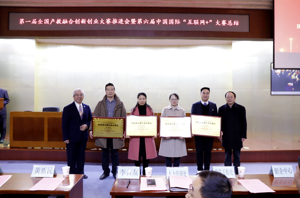 黄新民校长作了重要讲话。他指出,学校作为第一届全国产教融合创新创业大赛陕西省赛区承办单位,既是社会对学校创新创业人才培养质量的高度认可,同时也是对我校培养专创融合、全面发展高质量人才的鞭策与鼓励。作为省赛承办单位,各赛道承办学院要做好顶层设计,构建上下同心、多方协助的工作机制,按照大赛组委会的统一部署,扎实完成各项工作。黄校长对第六届“互联网+”大赛成绩进行了充分肯定,同时也希望各获奖项目团队及学院珍惜荣誉,戒骄戒躁,勇于创新,再创佳绩。在此以下三点要求:一要紧扣新时代新要求,深化学校创新创业教育改革,助力打造专创融合新思路。二要积极推动产教融合,健全协同育人机制。三要加强领导,精心组织开展好大学生创新创业大赛后续工作,要统筹资源,强化宣传教育,厚培双创文化沃土。希望师生能够以本次大赛为契机,认真总结经验,不断深化创新创业教育改革,加强学生创新创业能力培养,为2021年第七届“互联网+”大赛做好充足准备。