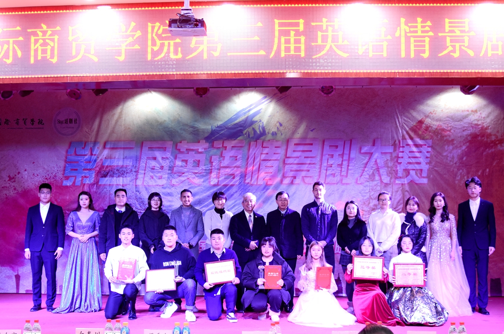 本网讯 12月16日晚,我校第三届英语情景剧大赛决赛在学术报告厅三楼举行,副校长梁季仓出席活动。人力资源处处长白秦川、商学院执行院长徐向宇、国际经济学院党总支书记张孝峰、国际教育学院院长助理白婧担任此次活动评委。