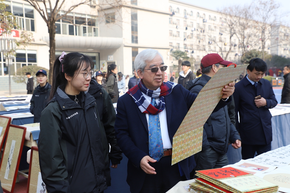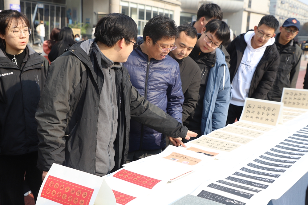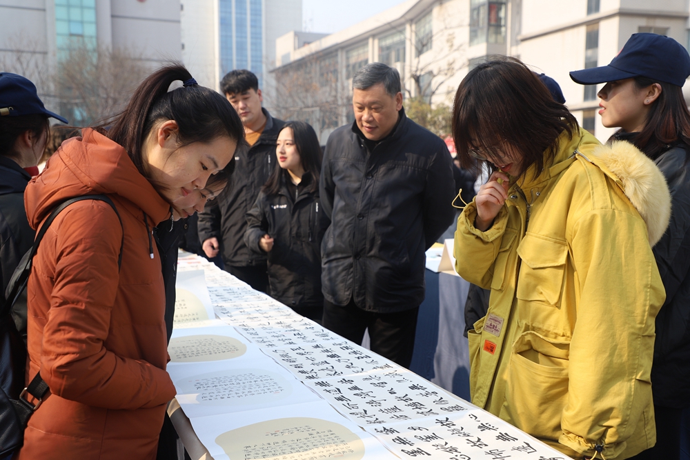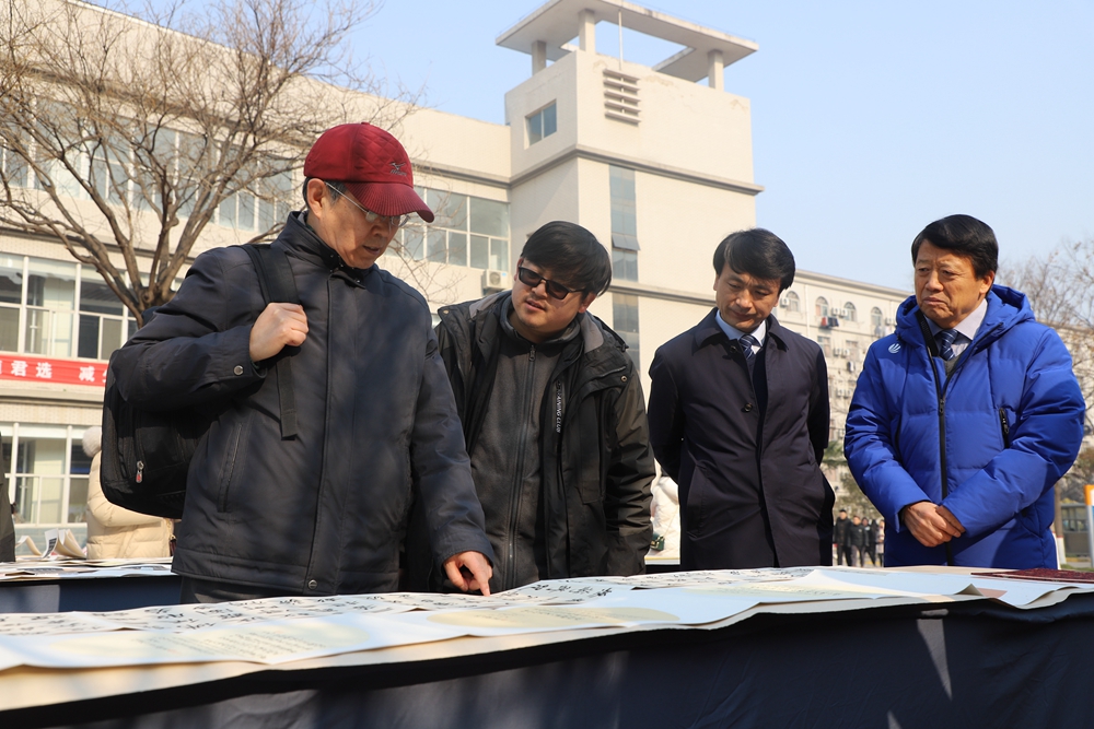 本网讯 12月21日下午,英国正版365官方网站书法类课程第三届教学成果展在怡馨苑广场举行。本次展览由英国正版365官方网站主办。成果展特邀请书法博士、西安工业大学书法专业硕士研究生导师傅汝明教授现场指导,学校校长黄新民,常务副校长贾明远,副校长梁季仓、副校长甘世平、副校长李吉友,文学教育学院院长卢洪涛、副院长柏昌利及各职能处室负责人等领导也来到展区现场观看指导。活动由英国正版365官方网站党总支副书记王娜主持。