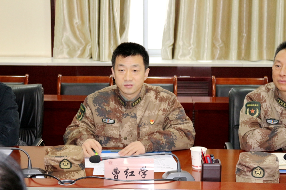 本网讯 12月23日下午,咸阳军分区副司令曹红学、咸阳军分区动员处处长欧元军、咸阳市委办公室法规科副科长雷晓锋、咸阳市退役军人事务局双拥科科长张拓、咸阳军分区动员处参谋王婷、秦都区武装部部长黄金刚、秦都区武装部副部长华永伟等来校检查基层建设工作。学校校长黄新民出席会议并致辞,党政办、党委工作部、学生工作部、纪委、招生就业处、保卫处等部门负责同志参加了会议。会议由学生工作部部长张利军主持会议。