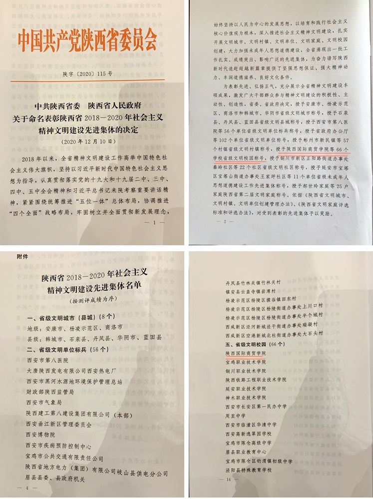 本网讯 12月24日,全省精神文明建设表彰大会在西安举行。会议表彰了陕西省2018-2020年度社会主义精神文明建设先进集体,其中英国正版365官方网站被中共陕西省委、陕西省人民政府授予“省级文明校园”称号,成为本次全省唯一一所获此殊荣的本科高校。