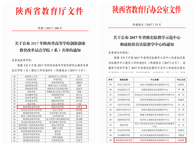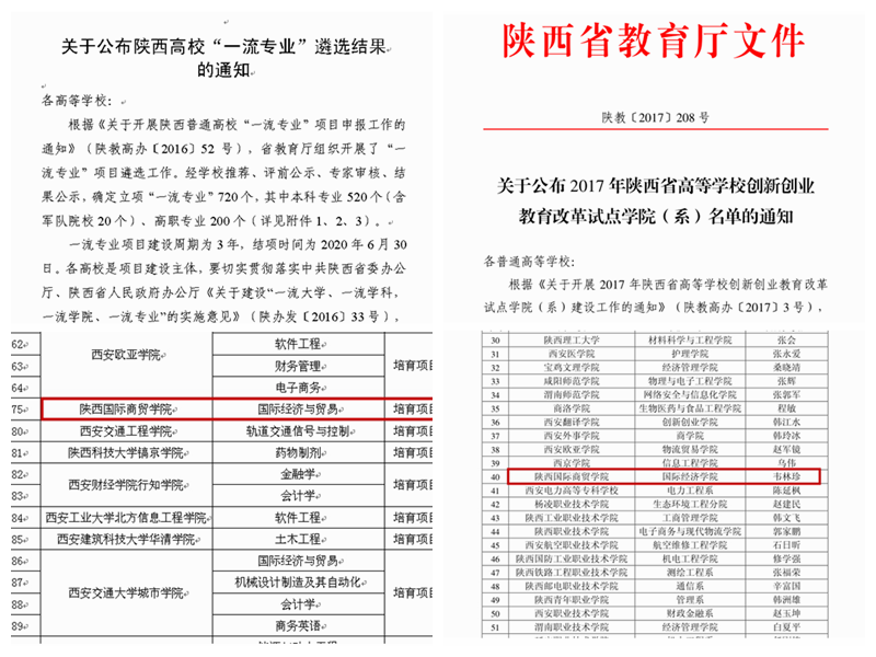 国际经济学院围绕学校强商兴药的战略布局,结合区域经济发展需求和学院基础,“十三五”期间采取“增量提质”的指导思想推进专业建设再上新台阶。一方面强化新专业的申报,经济学类专业布局与结构不断优化。新增金融工程、投资学和电子商务本科专业3个,取消部分薄弱专业。初步形成了以国际经济与贸易专业为核心,以电子商务、金融工程和投资学专业为支撑的专业群,专业结构不断优化。另一方面加强专业内涵建设,专业建设成果不断丰富。以一流专业和课程建设、专创融合改革和拔尖试点班改革为抓手推进专业高质量发展。国际经济与贸易专业先后获批“省级一流建设培育专业”和“国家双万工程省级一流专业”。金融工程专业获得校级一流建设专业。同时,学院获批“陕西高等学校创新创业教育改革试点学院”;经济管理实验教学示范中心获批“2017年陕西省虚拟仿真实验教学中心”。医药企业经营管理虚拟仿真实验项目获批“陕西省虚拟仿真实验教学项目”。“应用型高校‘三结合’商科类专业实践教学体系探索与实施”获批陕西省2019年高等教育教学成果二等奖。获得校级教学成果特等奖1项,一等奖2项。