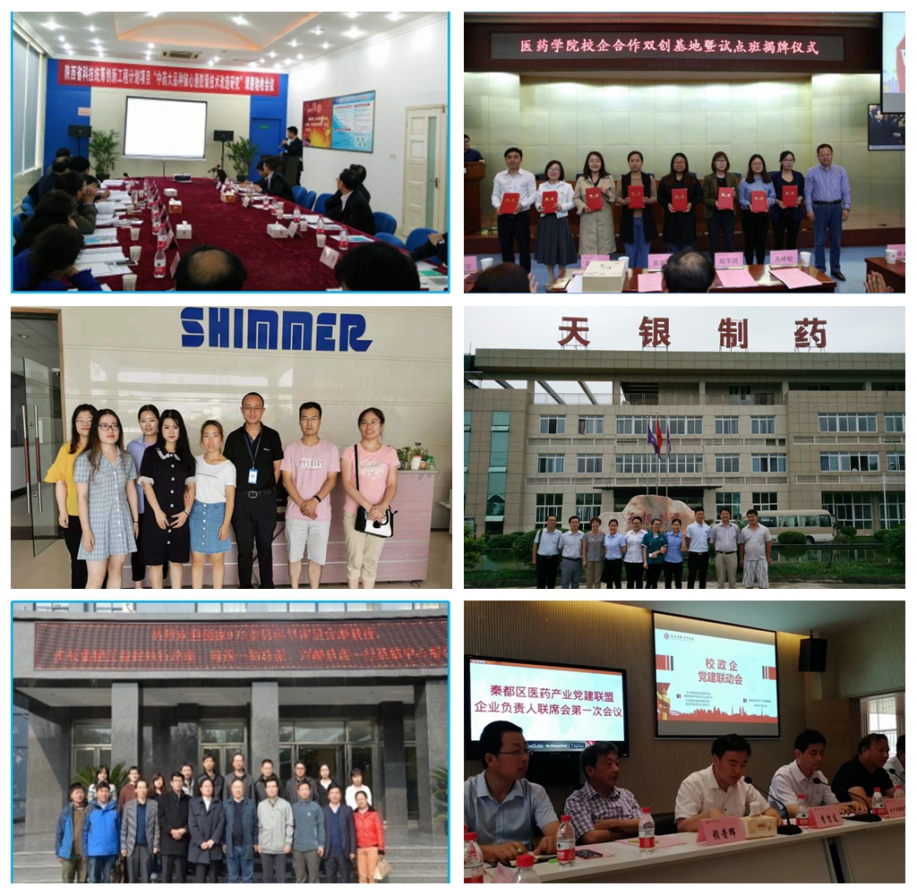“十三五”时期,医药学院围绕中医药行业需求和企业共同合作开展研究,新引进企业行业专家20余位,与步长制药共建陕西省首批院士专家工作站——生物医药创新制药技术研究院士专家工作站,与步长制药成功申报了陕西省2011协同创新中心——中药绿色制造技术协同创新中心,合作申报“陕西省创新药物研究中心”,“陕西省中药产业技术创新服务共享平台”。同时与步长集团及其它制药企业共同开展产学研工作,为企业提供技术服务65项,到账科研经费236.03万元,共同出版专著3部,并取得省级科学技术进步三等奖1项,厅局级科学技术进步一等奖1项,二等奖2项,陕西省科技工作者创新创业大赛铜奖2项。与陕西步长制药联合获批陕西省大学生创新创业教育校外实践基地1个。与陕西省中医药研究院共同获批校级实践教学基地。