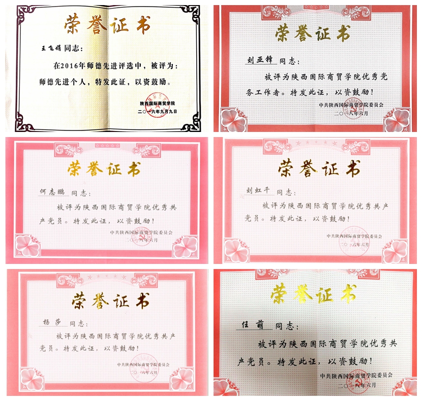 学院党总支按照新时代党的建设总要求和新时代党的组织路线,以党的政治建设为统领,落实全面从严治党要求,增强“四个意识”,坚定“四个自信”,做到“两个维护”,紧扣“围绕中心抓党建,抓好党建促发展”的整体思路,融合“七个有力”,将党建工作与中心工作紧密结合,积极构建“四三二一”的党建工作模式,充分发挥党组织战斗堡垒和党员的先锋模范作用,为推动学院党建工作、学生管理和教育教学工作的顺利开展提供了坚强的政治保证和组织保证。2016年学院分别获评学校“师德先进集体”、“先进基层党组织”和“五四红旗团总支”;党总支副书记、党支部书记分别荣获“优秀党务工作者”“优秀共产党员”称号;2019年学院教工第二党支部入选陕西省“党建工作样板支部”培育创建单位和咸阳市慈善志愿者服务先进集体;2020年学院荣获“陕西省师德建设示范团队”荣誉称号。