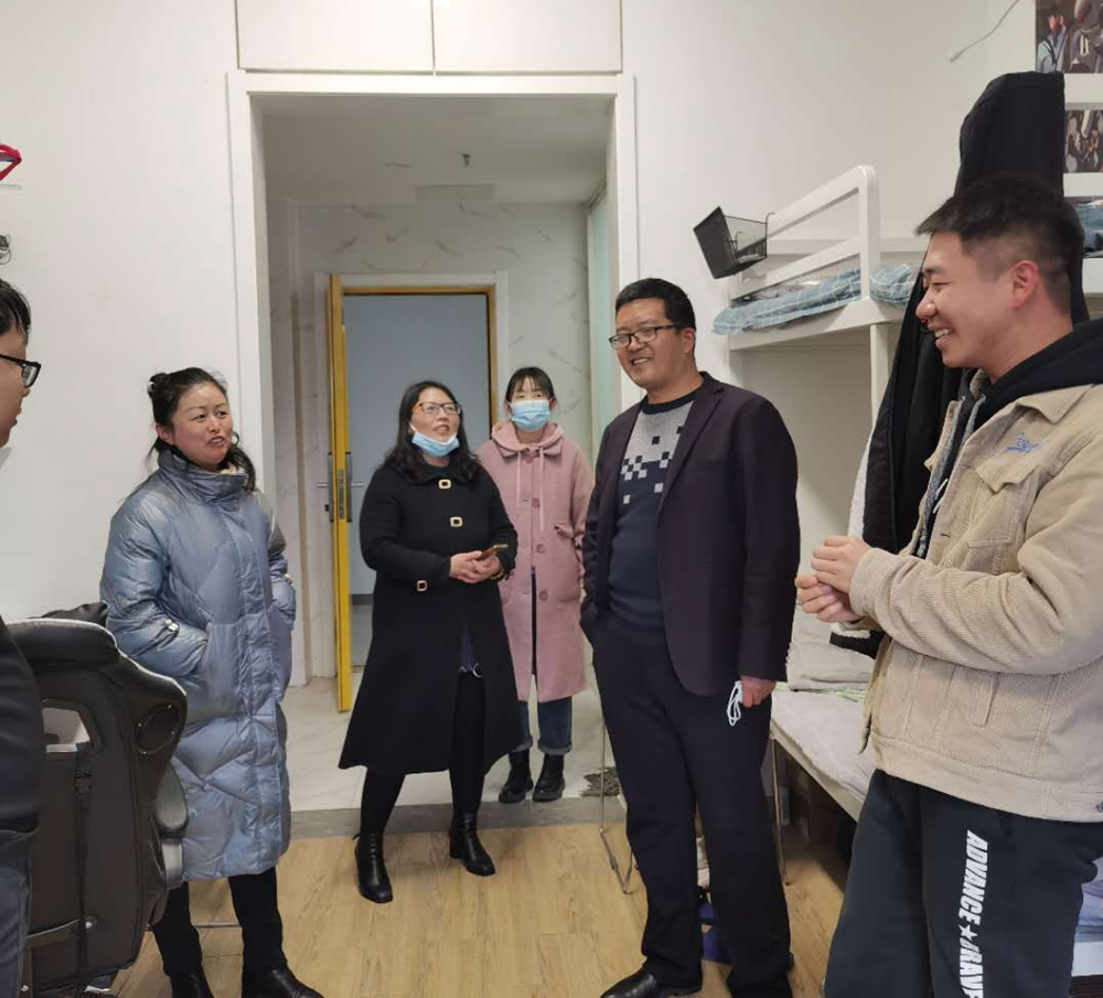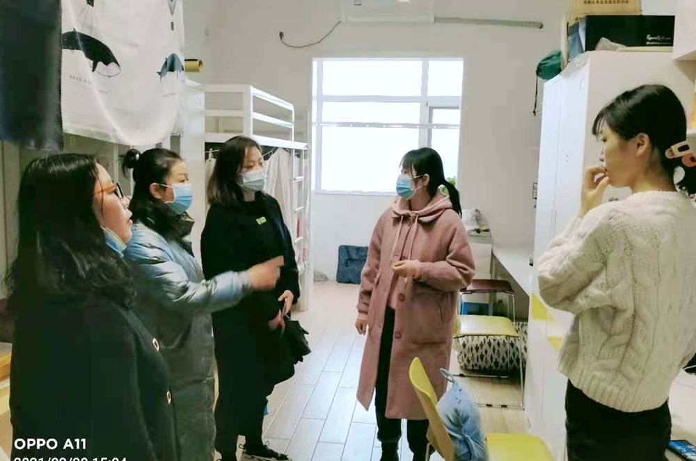 返校前,学院辅导员有针对性抓实学生返校途中防护知识宣传,确保平安返校,要求中高风险地区学生返校提供核酸检测报告。2月28日,学院杨雪书记带领全体学管人员深入学生公寓,了解学生到校情况,关心慰问学生,询问学生生活学习中是否有困难,欢迎学生重新回归时装大家庭。