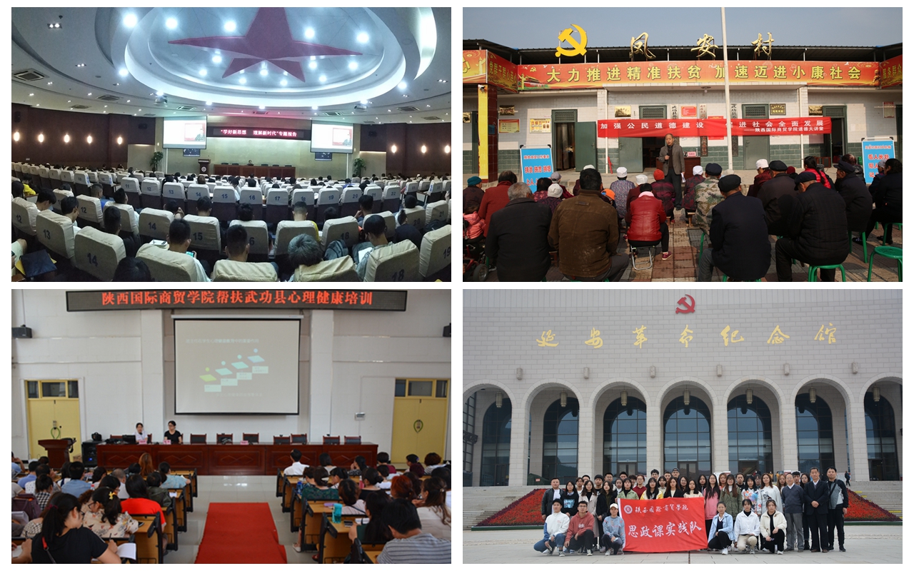 发挥马克思主义理论学科的意识形态阵地作用,积极参与学校扶贫工作“十个一”建设活动,为武功县中小学教师做关于中学生心理发展的心理讲座及道德讲堂活动2场、开展《乡村“道德讲堂”》主题报告2场。并积极开展扶贫工作理论研究,先后发表《习近平精准扶贫思想的马克思主义哲学特征》等学术论文。2020年,我院5名教师参加了陕西高校心理素质教育研究会防疫公益热线,3位老师获得“陕西省高校抗疫心理调研大数据分析教育管理优秀个人奖”,2人获得“陕西教育系统疫情心理援助平台”优秀志愿者称号。2名老师在咸阳市青年讲师团云课堂推出《疫情大考彰显中国特色社会主义制度优势》等作品。同时,学院不断加深健康中国理念,投身公益心理事业。心理教师团队与学生社团走出校园,走进三原东周儿童村、咸阳石村小学等地进行公益心理讲座10余次。开展在线心理科普活动,累计直播26次。学院不断搭建能够提供高质量社会服务的平台、探索了几个社会服务的重点方向、形成了比较完善的社会服务机制,使社会服务能力不断提升,逐渐形成了特色鲜明的社会服务形式,创造了有地方特色的社会服务品牌。