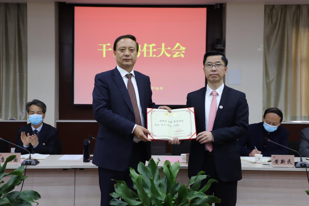 学校顾问黄新民在发言中表示坚决拥护学校对领导班子调整的决策,将紧密的团结在以新任校长领导下的新班子周围,为实现学校“十四五”发展目标,特别是审核评估和专硕点建设而努力奋斗。
