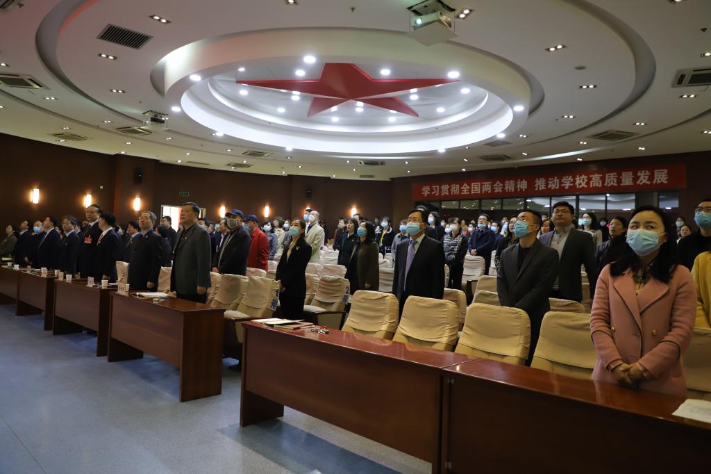 赵超董事长全面回顾了他在本次两会中“发挥中医药慢病防治作用,促进中医药高质量发展;加强中医药人才培养;强化科技型中小企业知识产权保护;推动中医药政策法规落地等提案内容。他以“乘势而上 奋发作为 努力实现“十四五”商院发展良好开局”为题,提出了学校未来重点发展方向。赵超董事长要求,2021年商院建设发展任务依然艰巨繁重,各部门、各单位要有强烈的紧迫感、危机感和高度的责任感、使命感,努力在人才培养、学科建设、科学研究、师资队伍建设、治理能力提升等方面实现新的突破,加快商院转型发展,推进各项工作任务顺利完成。同时,要毫不放松抓紧抓实抓细疫情防控工作,确保师生健康和校园安全,以优异成绩迎接建党一百周年!