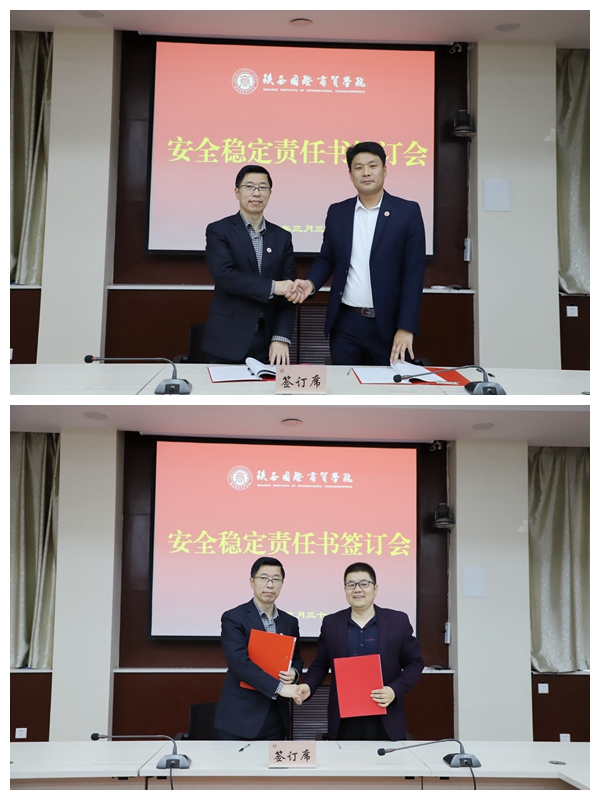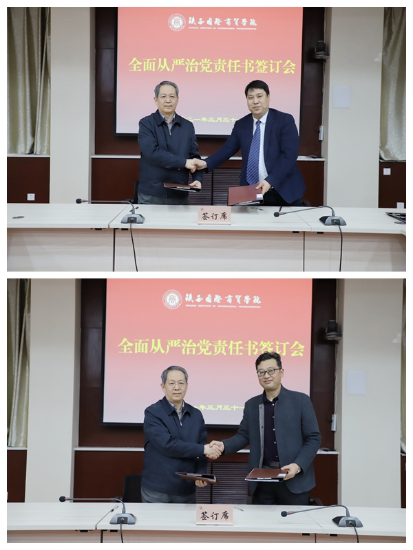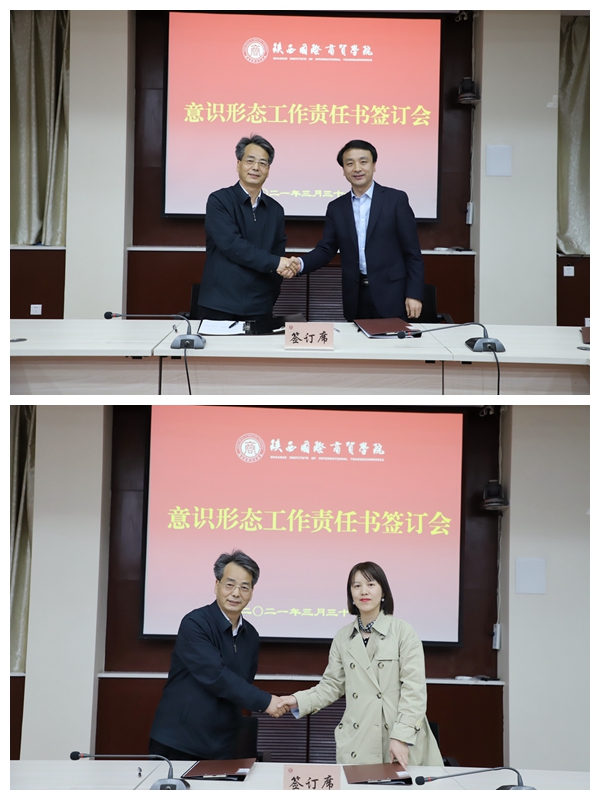 张辉、康亚国、贾明远代表学校分别与各部门、各单位代表签订了《2021年安全稳定目标责任书》《2021年意识形态工作责任书》《2021年全面从严治党目标责任书》。