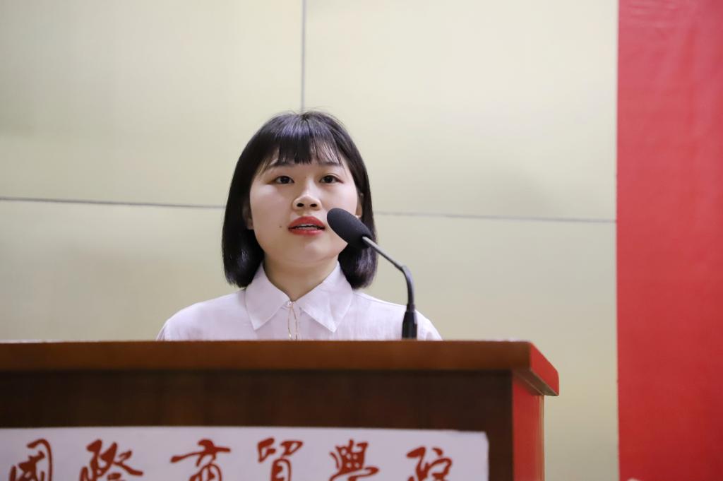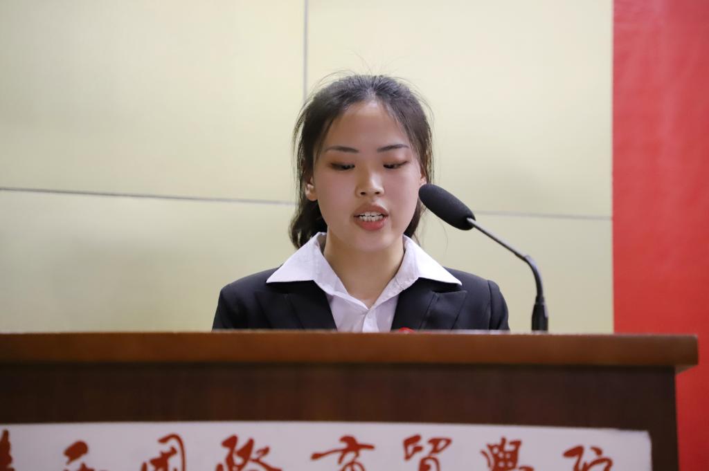国家奖学金获奖代表英国正版365官方网站张培曦,优秀学生干部获奖代表时装艺术学院武建国,先进集体获奖代表医药学院王莹分别发言,他们各自分享了学习和成长道路上的经历与感悟,讲述在学校学习和参与实践活动的那份坚守,传递着积极向上的求学精神,团结奋进的班风学风,鼓舞着全体学生要胸怀梦想,坚定信念,勤奋好学,诠释了“尚德励志,勤奋自强,求实拓新,包容开放”的学校精神,做出了不负青春,不忘感恩,不丢梦想的郑重承诺。