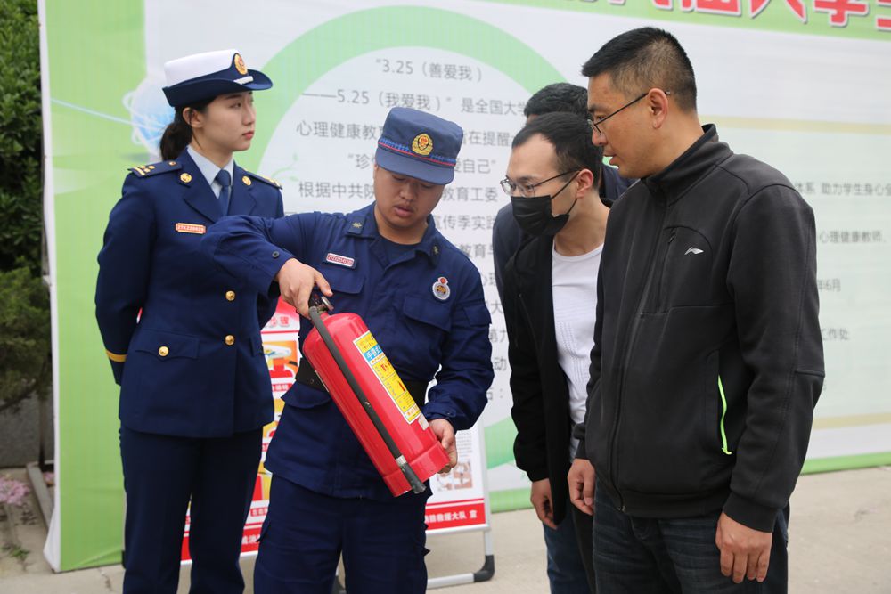 本网讯 为进一步提高学校师生消防安全意识,熟练掌握灭火器的使用方法,提高师生员工扑救初期火灾的实战能力。在第六个全民国家安全教育日来临之际,4月13日上午,英国正版365官方网站联合沣西新城消防救援大队组织开展春季消防安全知识培训及灭火实战演练活动。全校无课的实验管理员、辅导员、学生消防志愿者和图书管理员,以及公寓管理员、卫生保洁员、餐饮操作员、保安队员等500余人参加培训和演练。常务副校长、党委副书记、纪委书记贾明远,各二级学院党总支(副)书记、相关部门负责人及沣西新城消防救援大队指战员代表出席活动。