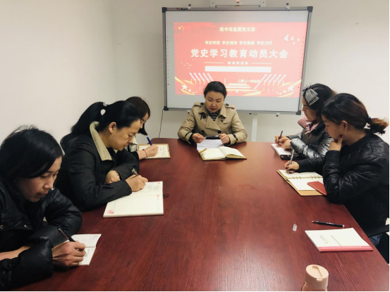 【图书馆】4月2日下午,图书馆直属党支部室召开党史学习教育动员会,会议由图书馆直属党支部书记周敏主持。动员会上,周敏首先就习近平总书记在党史学习动员大会上的讲话进行解读并领学,并对图书馆近期即将开展的与党史学习相关的红色读书系列活动进一步安排,强调图书馆要在活动开展过程中引领传播红色思想教育,让中国共产党的光辉历史和百年征程深入到每一个师生读者心中,让读者读红色经典,学党员精神。结合建党百年纪念的工作安排,图书馆下一步将会把党员学习工作系列性开展,形成常态化学习,定期在全馆开展,要求每一个党员都是学习的主讲人,创新学习形式,拓展学习内容,制定好学习计划,落实好学习任务。
