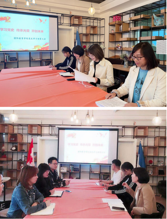 【国际教育学院】4月8日下午,国际教育学院召开党史学习动员会。会议由学院办公室主任李玉玲老师主持,全体教工党员参加会议。李玉玲宣读《国际教育学院党史学习教育实施方案》。国际教育学院院长助理白婧作动员讲话,她指出,作为高校教师要全身心投入,静下心来,认真学习、深入思考,做到学有所思、学有所悟、学有所得。从百年党史中品读中国共产党人奋斗的精神密码,认清当代中国所处的历史方位,增强历史自觉,把党的成功经验传承好、发扬好,引导广大学生自觉牢记使命,坚定担当使命。同时会上宣读了国际教育学院党史学习教育领导小组,明确职责,层层落实,有组织有成效地开展党史学习教育。