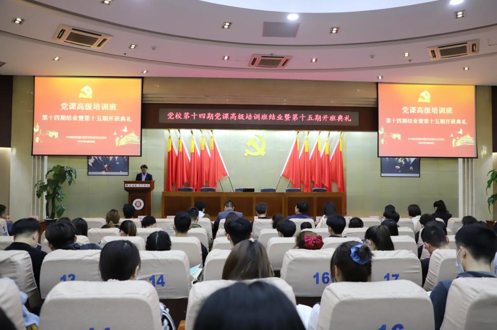 康亚国在讲话中首先向十四期高级党课培训班结业的340名学员表示衷心祝贺,同时向参加十五期培训班的全体学员表示热烈欢迎!康亚国阐述了党积极在广大青年学生中培养和发展党员的重要意义,他指出,党校培训,是我们青年教师和广大学生进行共产主义教育的重要途径,是优秀青年了解党、认识党、学习党的理论的生动课堂。这不仅是一次难得的集中学习提高机会,也是大家人生政治道路上的重要一步。他希望全体学员能够端正入党动机,牢记初心使命。不忘来时路,坚定政治信念,坚定面向未来的信念,在“两个一百年”奋斗目标的历史交汇点上,具备识变之智、应变之方、求变之勇,在这里学会知识、学会做事、学会合作、学会生存,真正做到思想上入党与组织上入党的有机统一;树立宗旨意识,发挥表率作用。广大青年学生要坚定理想信念,补精神之“钙”,自觉做共产主义远大理性和中国特色社会主义共同理想的坚定信仰者和忠实执行者;要锤炼品德修为,自觉践行社会主义核心价值观,把良好道德修养落实到自己的言行举止中,以实际行动促进社会进步,追求更有高度、更有境界、更有品位的人生;要勇于砥砺奋斗,做奋进者、开拓者、奉献者,不怕困难,顽强拼搏,仰望天空,脚踏实地,知行合一,严谨务实,努力成为有理想、有学问、有才干的实干家;遵守培训纪律,圆满完成学习任务。各位参训学员要严格遵守学习纪律,坚持理论联系实际,以严明的纪律和端正的学风做到学有所思、学有所获、学有所成、学以致用,确保培训班学习取得实实在在的效果;