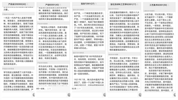 为使党史学习教育有内涵,出效果,珠宝学院开展了内容丰富、形式多样的理论学习,推动党史学习教育“走心”。学院召开教工党员专题理论学习会,围绕“学党史,悟初心使命”的主题,先后组织收看全国两会视频报告会,举行党史学习教育集中研讨会,与会人员认真学习《论中国共产党历史》《毛泽东、邓小平、江泽民、胡锦涛关于中国共产党历史论述摘编》《中国共产党简史》《习近平新时代中国特色社会主义思想学习问答》等书籍,成员围绕《深入学习党史,坚守立德树人使命》《奋斗与辉煌——中国共产党百年历史进程与启示》《学好党史守初心铸魂育人担使命》等内容作了领学。