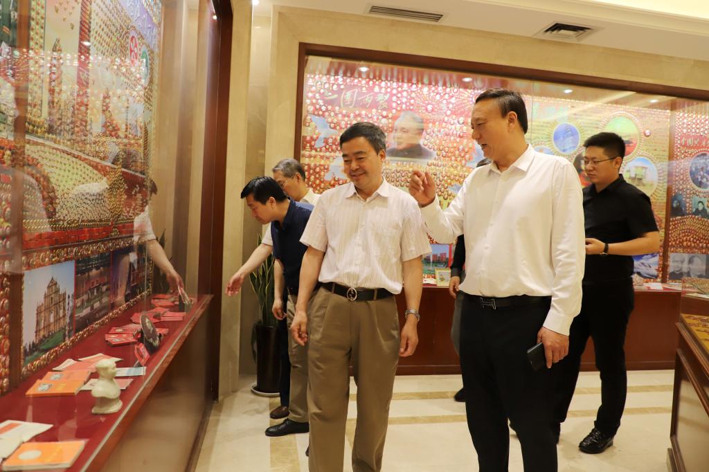 揭牌仪式后,丁德科一行在董事长赵超和校领导陪同下先后参观了学校经管类综合实训中心、中药研究院分析测试中心和步长制药毛主席像章珍藏馆等。