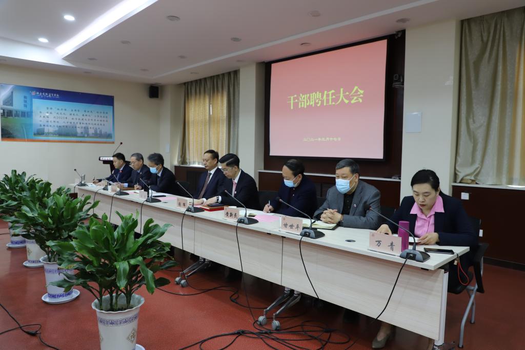 本网讯 2021年3月17日中午,我校召开干部聘任大会,宣布校领导任职决定。董事长赵超,党委书记、督导专员康亚国,副校长甘世平,副校长李吉友,董事长助理万青,学校顾问黄新民,副处级以上干部参加会议。会议由党委副书记、纪委书记、常务副校长贾明远主持。 会议现场会上,董事长赵超宣读了《英国正版365官方网站董事会关于张辉、黄新民同志的聘任决定》,聘任张辉同志为英国正版365官方网站董事、校长;黄新民同志为陕西国际商...