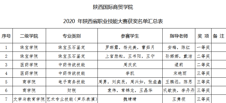 本网讯 2020年陕西省高等职业院校技能大赛各项赛事已圆满结束,我校共荣获一等奖1项、二等奖2项、三等奖4项的优异成绩,奖项分别是珠宝玉石鉴定类2项、中药传统技能类2项、电子商务技能类1项、艺术专业技能类1项、财税类1项。此项赛事由陕西省教育厅主办,部分赛程由我校承办,学校领导高度重视,教务处积极组织协调,完善校赛制度,为二级学院备赛做好支持和服务工作。我校参赛选手凭借优异表现和出色发挥,以扎实的专业技能和良...