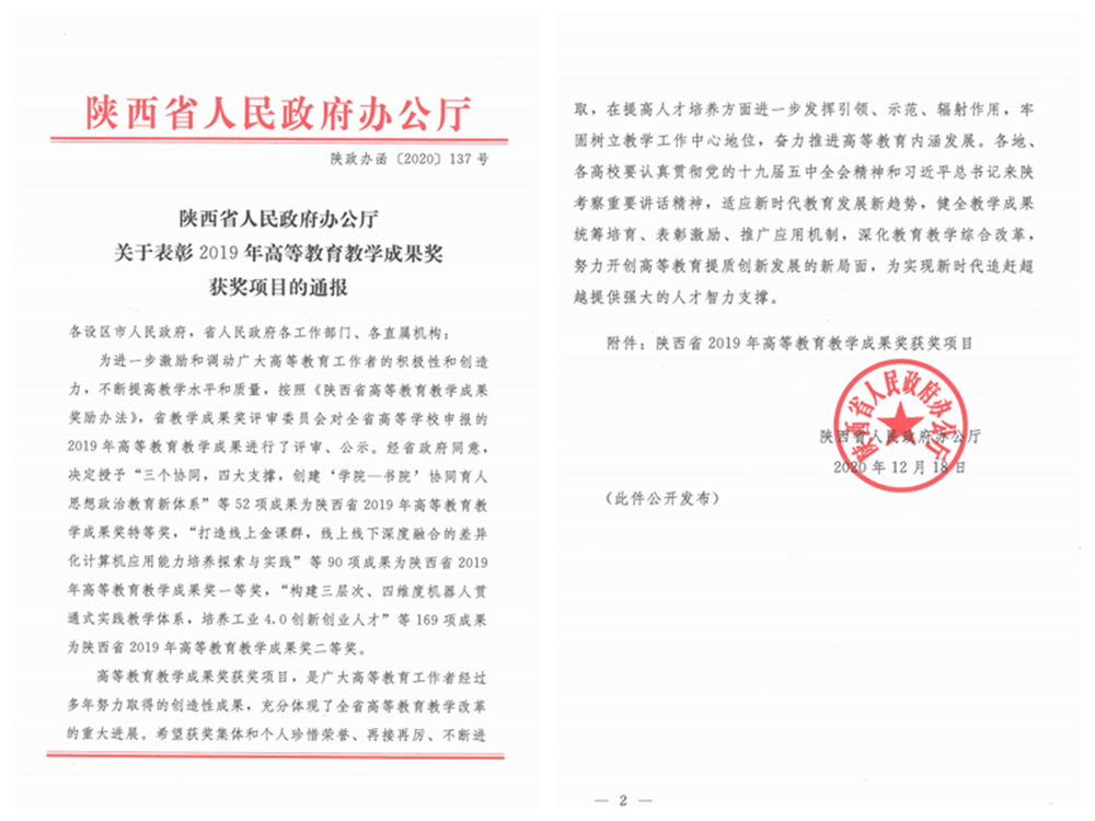 我校喜获陕西省教学成果二等奖