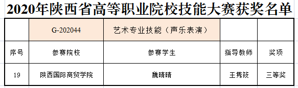 本网讯 2020年是不平凡的一年,面对疫情,文学与教学院全体师生乘风破浪,奋勇向前,在圆满完成既定课程授课要求的前提下,积极组织、指导学生参加各类竞赛,在2020年陕西省第六届大学生艺术展演、第四届“国青杯”艺术设计大赛、陕西省高等职业院校技能大赛、全国大学生英语竞赛、“外研社杯”全国大学生英语竞赛、陕西省第九届文化艺术节书法篆刻作品展等多个竞赛中喜获佳绩,取得了丰硕的成果。——陕西省第六届大学生艺术展演获2...